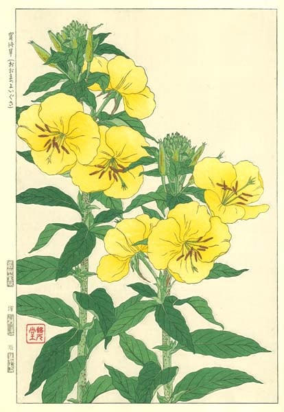 F133 宵待草 花版画 Flower Woodcut-Evening primrose-