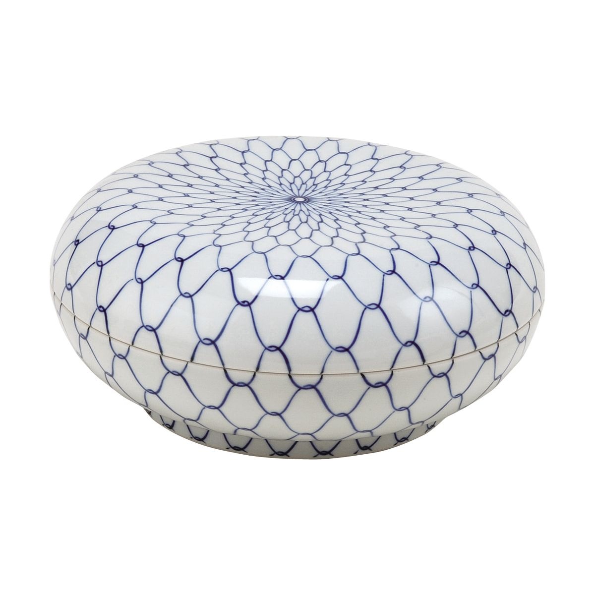 食籠 染付 網目 高野昭阿弥作(桐箱)(直径21.5x高さ11cm)