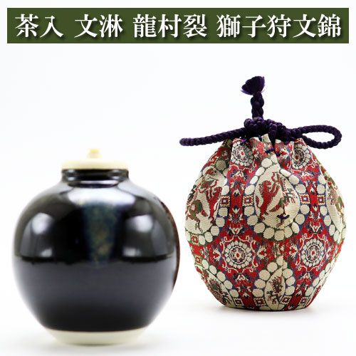 茶入 文淋 仕覆龍村裂 獅子狩文錦 茶道具 陶磁器 茶の湯用品 抹茶お点前用 なつめ ナツメ 茶入 ちゃいれ 入門 初心者 セット...