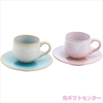 萩焼 ガラス釉 ペア珈琲カップ&ソーサー G7-18P