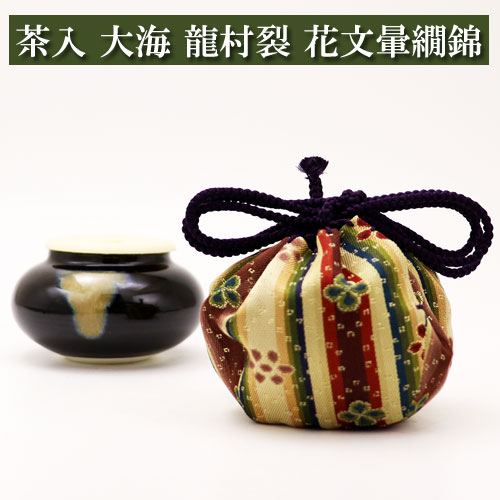 茶入 大海 龍村裂 花文暈繝錦 茶道具 陶磁器 茶の湯用品 抹茶お点前用 なつめ ナツメ 茶入 ちゃいれ 入門 初心者 セット お...