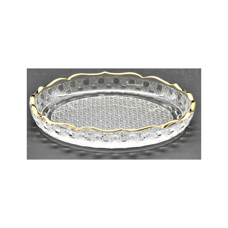 ガラス 茶道具 義山 吉祥小皿 金縁 (Φ16xH2.5cm)(紙箱)