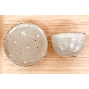 越前焼工業:「くつろぎのうつわ 雪イッチン(K02-03)」カップとお皿のセット