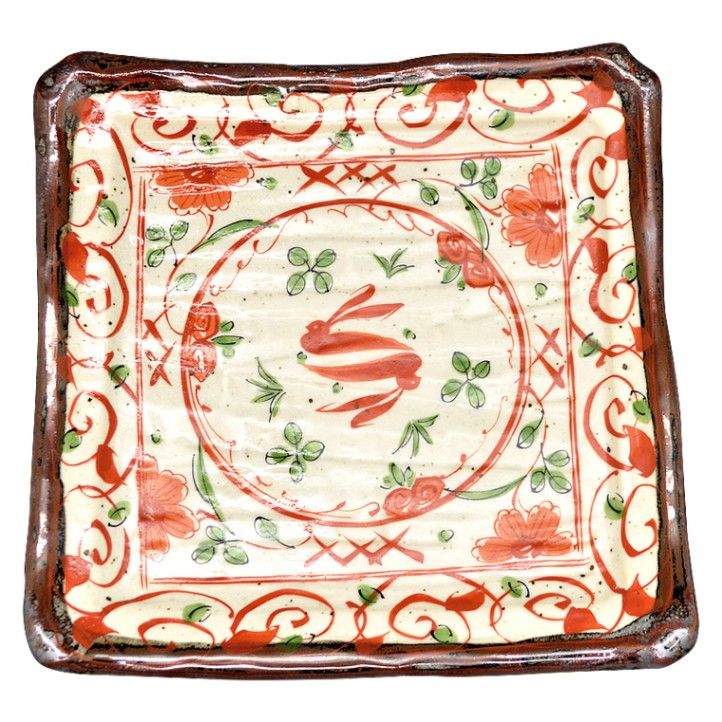 正角皿 花赤絵 (縦22cmx横22cm ×高さ3cm)