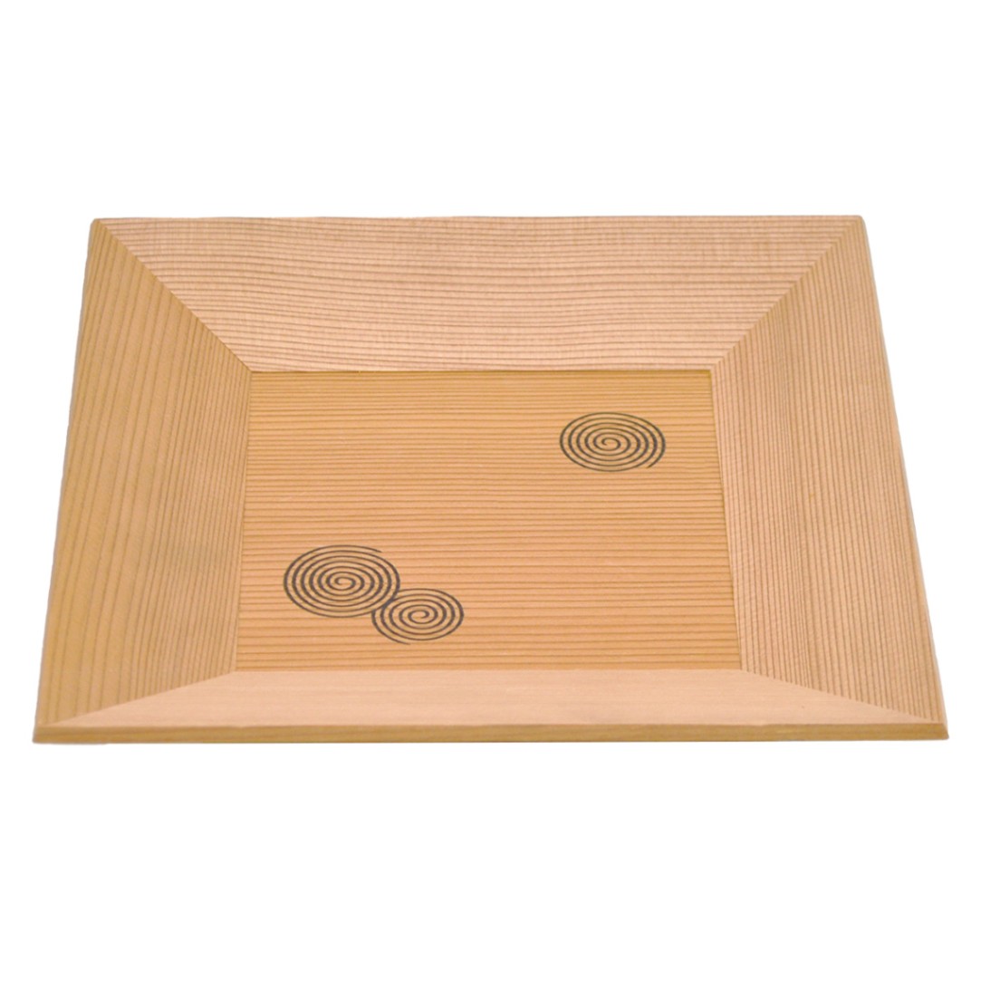 杉四方盆 干菓子器 渦(22.7角×3.2cm) (化粧箱)