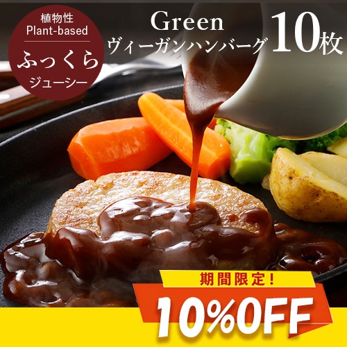 【大感謝セール10%OFF!】Green ヴィーガンハンバーグ(60g×10枚) 業務用 ヴィーガン ベジタリアン
