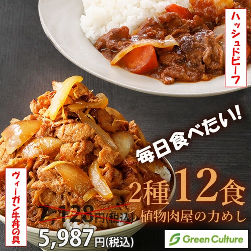 ガッツリヴィーガン12食セット 毎日食べたい! vegan 牛丼の具 ハッシュドビーフ Greenデリ メガ盛り ガッツリメシ ...