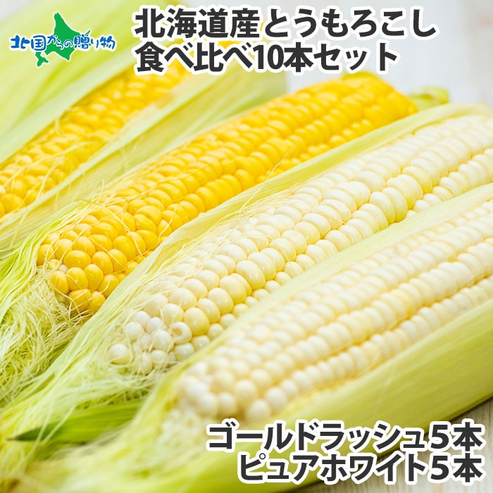 北海道産 トウモロコシ 食べ比べセット 10本 とうもろこし/BBQ/バーベキュー/ゴールドラッシュ/ピュアホワイト/スイートコ...