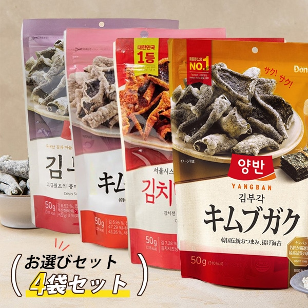 [東遠] ヤンバン キムブガク 選べる4個セット / 4袋(50g×4) キムチ味 ガーリック味 エビ味 オリジナル味 のり天 の...