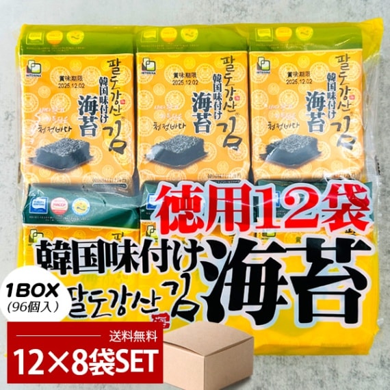[八道江山] 味付海苔 八道江山海苔 / BOX(12パック×8袋) オリーブ油とエゴマ油で味付 お弁当用 のり 味付海苔 弁当海...