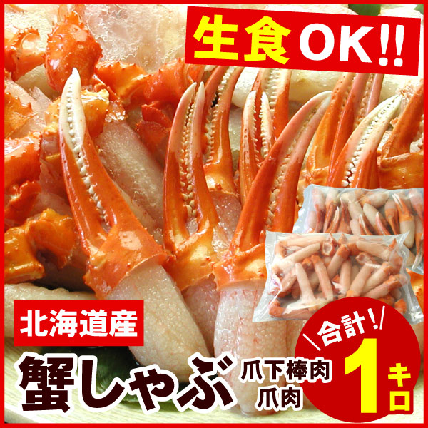 カニ生食可 北海道産 生紅ズワイガニ かにしゃぶ セット 爪下棒肉 爪肉 合計1kg 福袋 カット済み かに刺身 生食可 送料無料...