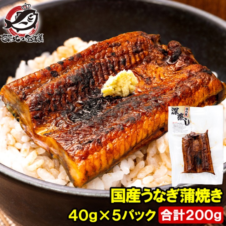送料無料 うなぎ蒲焼き カットうなぎ 国産うなぎ 40g×5パック 合計200g 食べきりサイズ