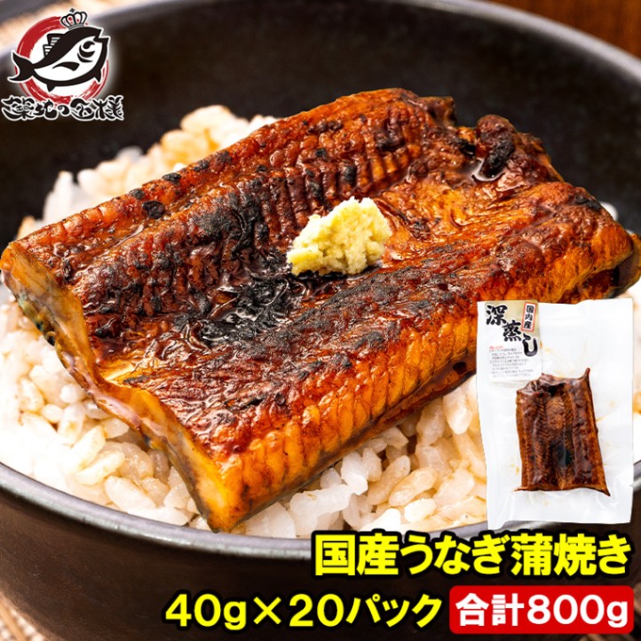 送料無料 うなぎ蒲焼き カットうなぎ 国産うなぎ 40g×20パック 合計800g 食べきりサイズ