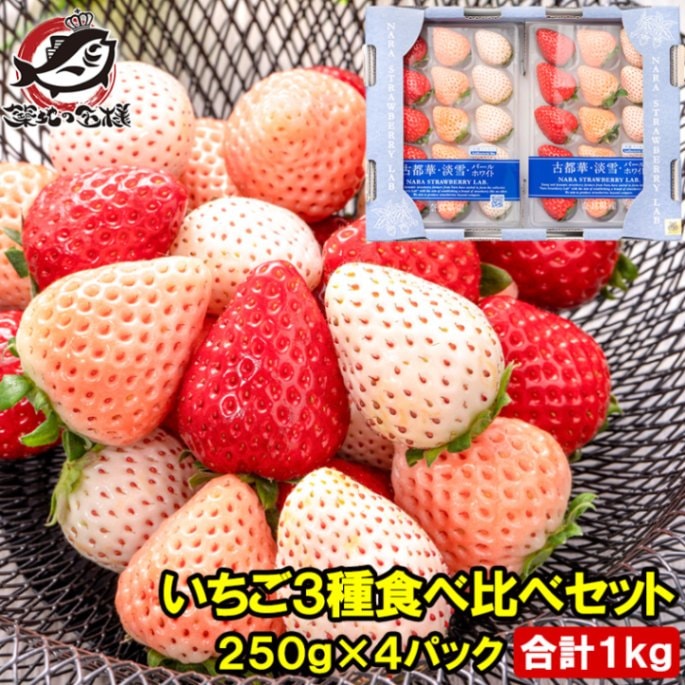 いちご3種食べ比べセット 250g×4パック 合計1kg 1箱 2パック入り