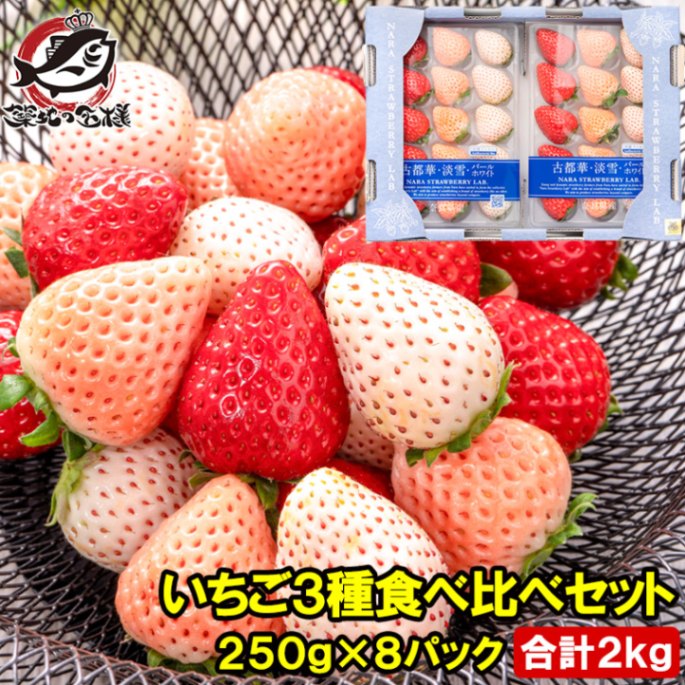 いちご3種食べ比べセット 250g×8パック 合計2kg 1箱 2パック入り