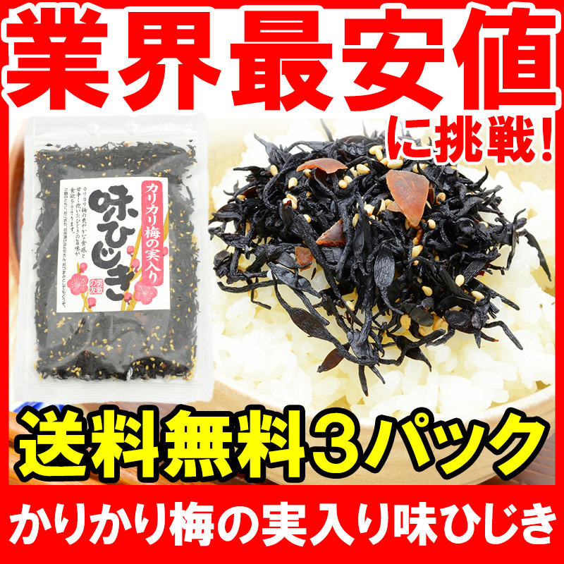 メール便 送料無料 カリカリ梅の実入り味ひじき 100g×3パック 生ひじきふりかけ ソフトふりかけ 梅ひじき しそひじき おにぎ...