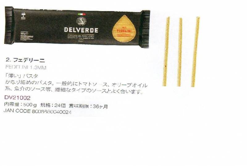 イタリア産 最高級デルヴェルデ(Delverde)N.2 フェデリーニ 太さ約1.3mm 500g デュラム小麦セモリナ