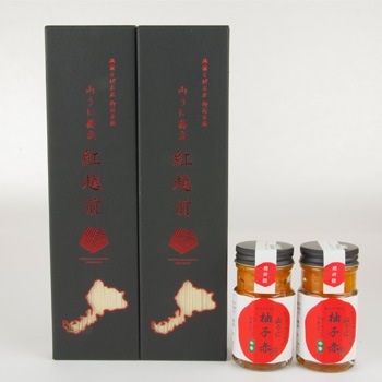 越前隊「柚子赤2本・山うに蕎麦 紅越前 2個(中辛/辛口)」