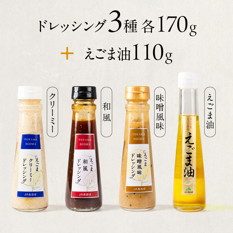 JAあおば:富山県産えごま油と3種のえごまドレッシングセット(化粧箱入)