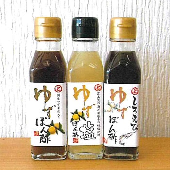 トナミ醤油:ゆずぽん酢・しろえびゆずぽん酢・ゆず塩ぽん酢 各1本120ml