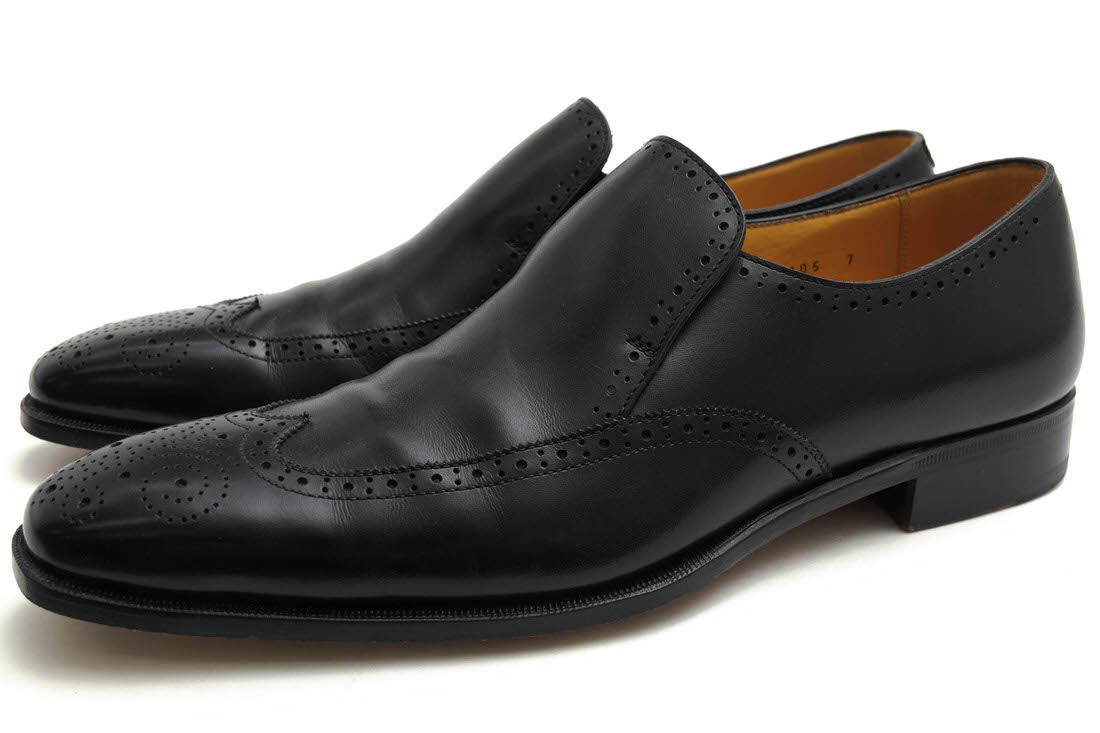 Trading Post T105 / トレーディングポスト エラスティックシューズ 牛革 カーフ ウイングチップ スリッポン グ...