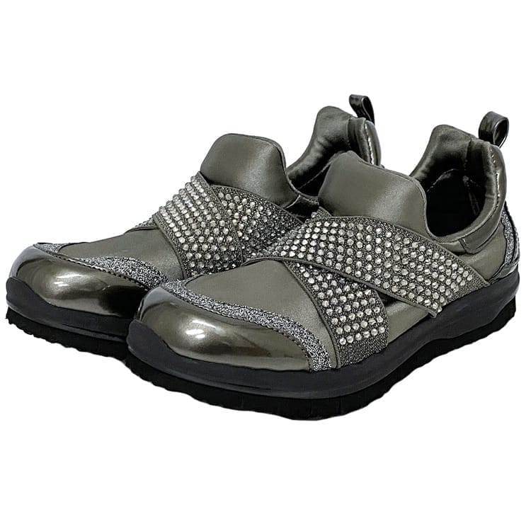 ヌーディウォーク スリッポン スニーカー ec-23323 モスグレー 未使用 23.5cm サテン ラインストーン Sランク n...