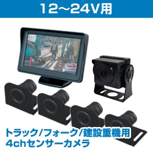 12~24V トラック/フォーク/建設重機用 4chセンサーカメラ【D-2176】