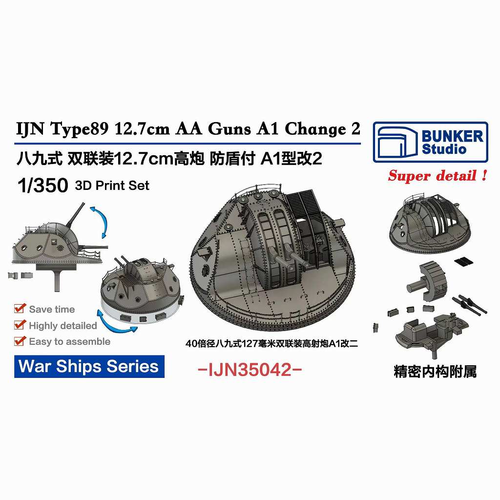 IJN35042 1/350 日本海軍 12.7cm連装高角砲A1型改2 (煤煙よけ盾付き) 【ネコポス規格外】