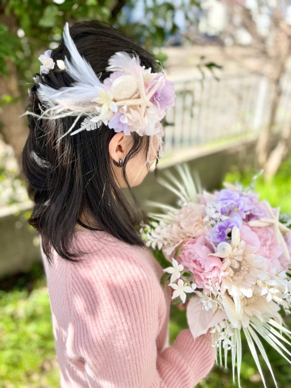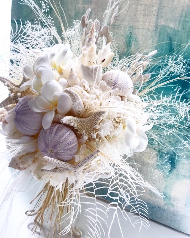フェザーグラス貝殻3点セット(ブーケ・ヘッド・ブートニア)