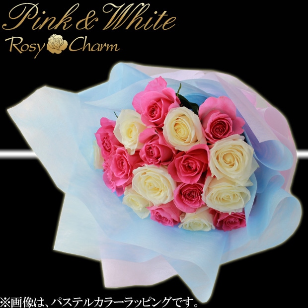 バラの花束ミックス ピンクと白|メッセージローズ・ブーケミックス|メッセージフラワー対応(本数選択14本~108本)
