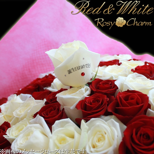 バラの花束 ミックス 赤と白|メッセージローズ・ブーケミックス|メッセージフラワー対応(本数選択14本~108本)