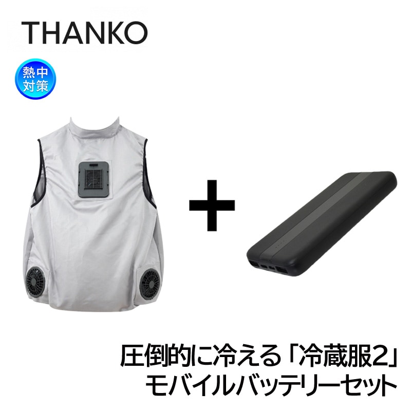 サンコー 極冷プレート+強風ファンで圧倒的に冷える「冷蔵服2」モバイルバッテリーセット NRTKCV23SGY 冷却ベスト 暑さ対...