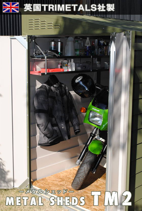 【2段吊り棚プレゼント!】メタルシェッド TM2(TM2DD)【バイクガレージ バイク自転車の保管倉庫 英国製お庭の物置】