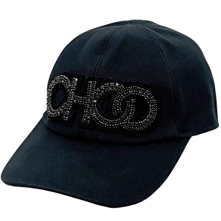 ジミーチュウ キャップ ブラック 美品 クリーニング済み ラインストーン コットン 100 中古 JIMMY CHOO 帽子 ロゴ...