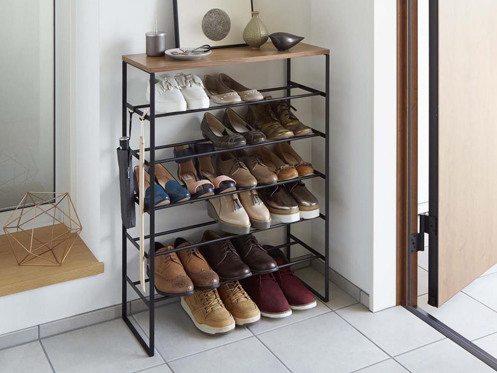 【tower/タワー】天板付きシューズラック 6段 ブラック