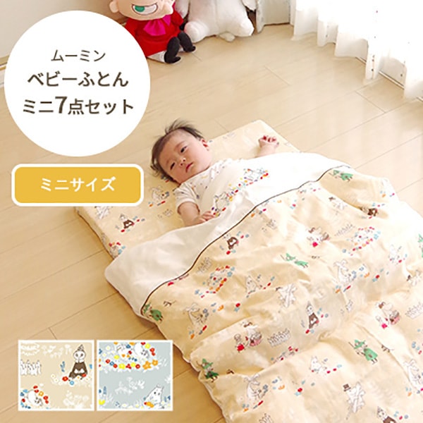 MOOMIN BABY ムーミン ベビーふとんミニ7点セット 敷布団 掛布団 ダブルガーゼ カバー 枕