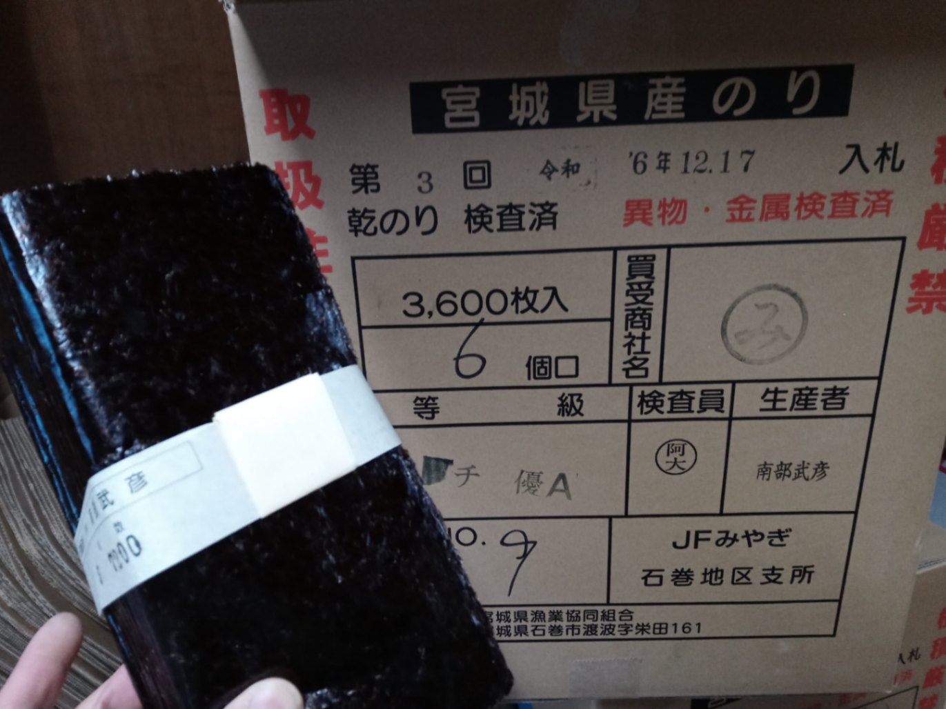 2025年1月初入札!香りが強い青が多く飛んだ”混等級”乾のり (全形50枚入)