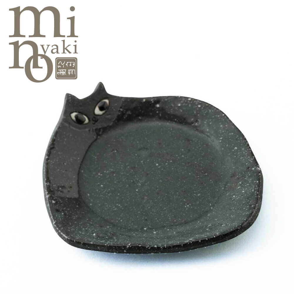手作り猫小皿黒