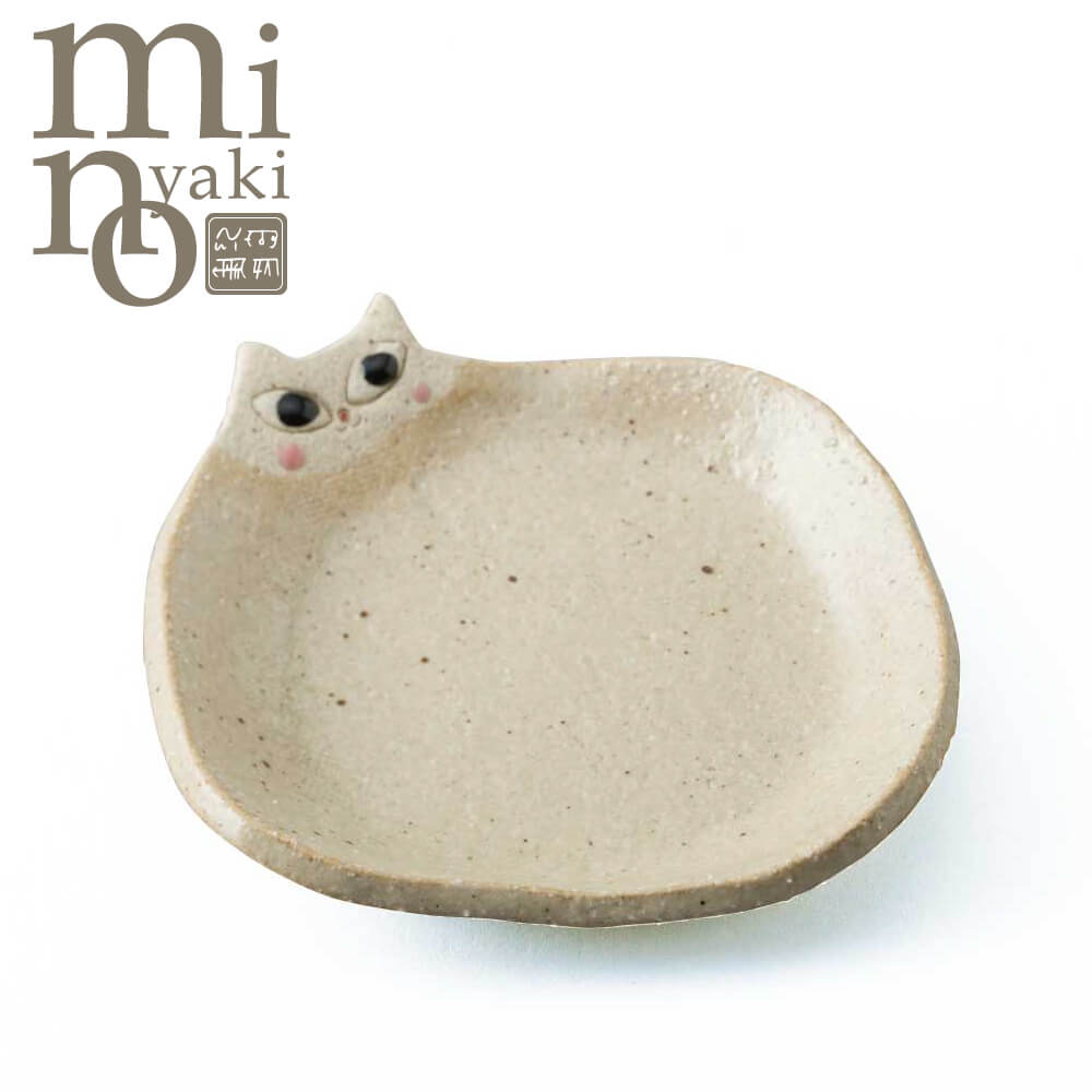 手作り猫小皿白