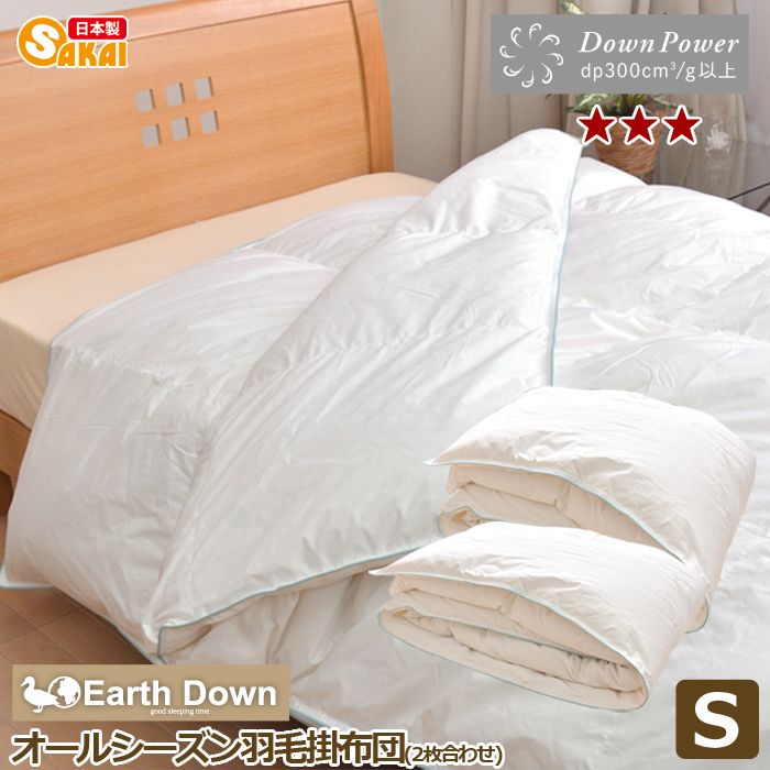 【日本製】 アースダウン 無地 ナチュラル羽毛 2枚合わせ掛け布団 シングルサイズ (TCNDS2) 【羽毛布団 羽毛ふとん 掛...