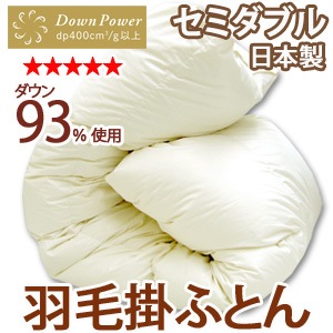 【受注生産】無地ナチュラル最高級羽毛掛け布団セミダブルサイズホワイトダウン93% 60サテン超長綿生地【羽毛布団セミダブル日本製掛...