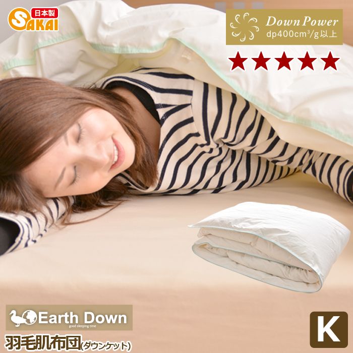【日本製】アースダウン無地ナチュラル羽毛肌掛け布団/ダウンケットキングサイズホワイトダウン93%(TCRDKH)【国産肌布団羽毛布...