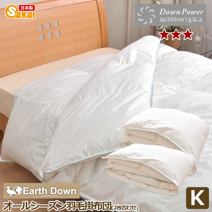 【受注生産】【日本製】アースダウン無地ナチュラル羽毛2枚合わせ掛け布団キングサイズ(TCNDK2)【国産羽毛布団羽毛ふとん掛布団送...
