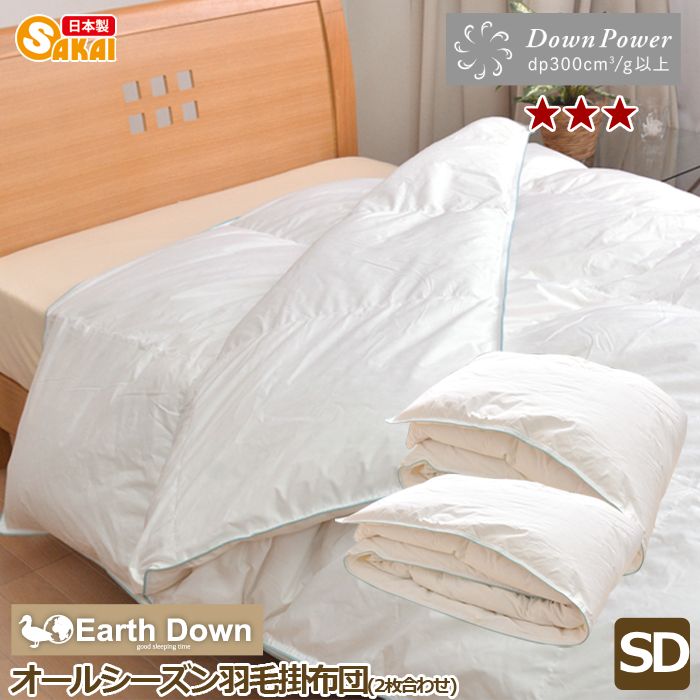 【受注生産】【日本製】アースダウン無地ナチュラル羽毛2枚合わせ掛け布団セミダブルサイズ(TCNDSD2)【国産羽毛布団羽毛ふとん日...