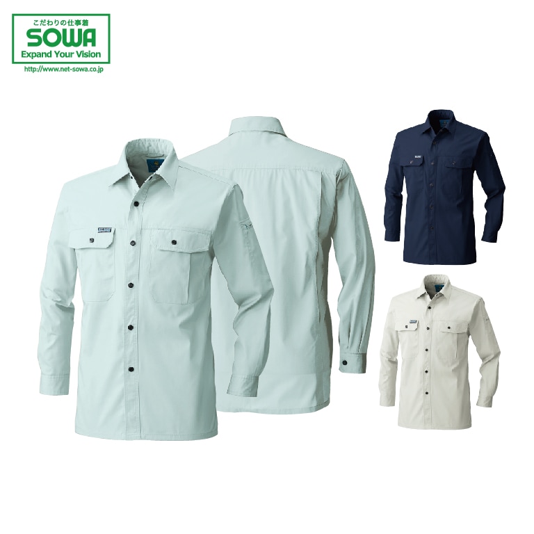 SOWA 195 長袖シャツ M L LL 3L 4L 6L 8L 【 作業着 作業服 桑和 ソーワ 小さめサイズ 普通サイズ 大...