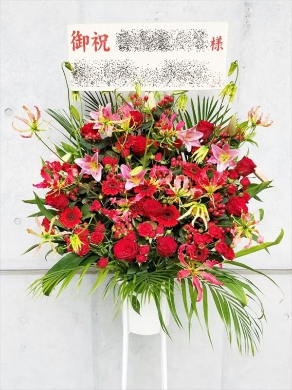 レッド系に少しピンク入れて スタンド花 1段 税込 16500円 1187st1-062