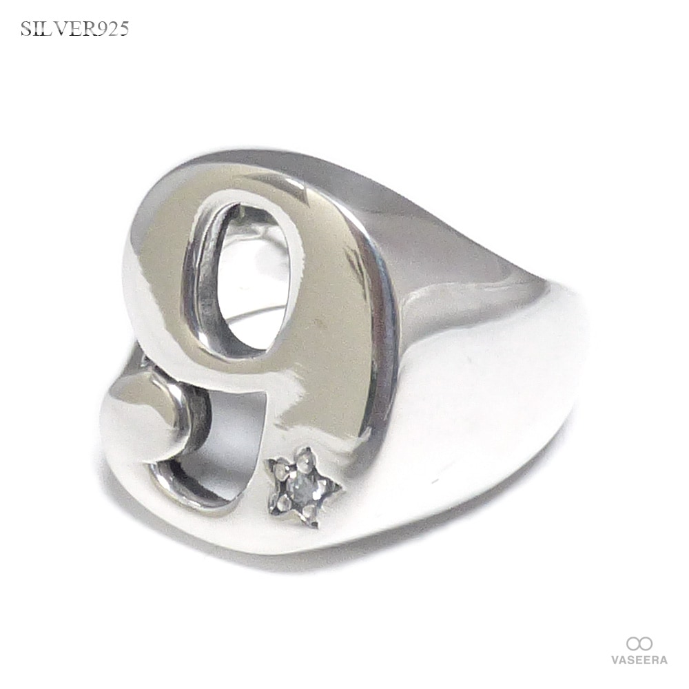 ナンバー”9” デザイン ジルコニア埋込み シルバーリング 【シルバー925/SILVER925 /指輪】