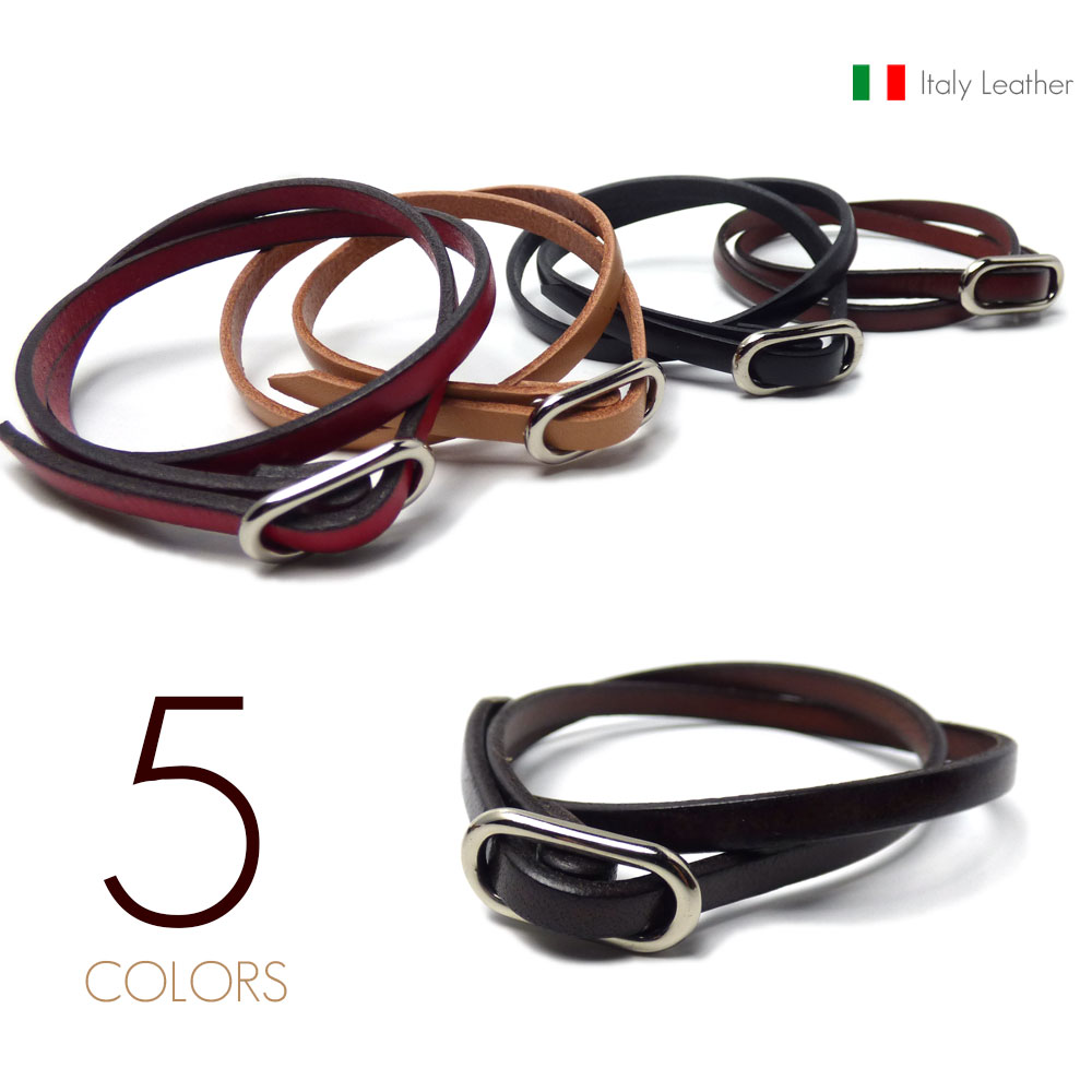 イタリアンレザー(5mm牛革/全5色) サイズフリーバックル 二重巻き レザーブレス/二連ブレスレット 【革 ブレスレット /イ...