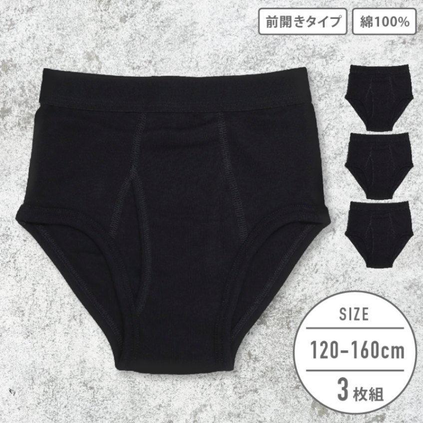 【男の子】キッズジュニア ブリーフ 3枚組 無地/前開き 120~160cm【本体:綿100%】