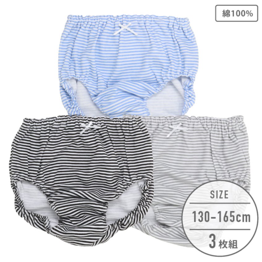 【女の子】キッズジュニアショーツ 3枚組 ボーダー柄 130~165cm【綿100%】